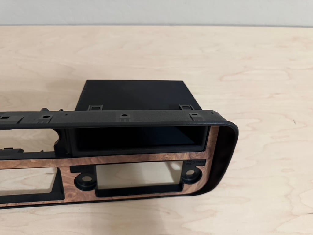 81-83 dash bezel set with vinyl wood grain insert. Includes a 5" cubby (factory is only 3"). Includes the A/C vent, not in picture. The center bezel is new and the drivers side is used/restored.